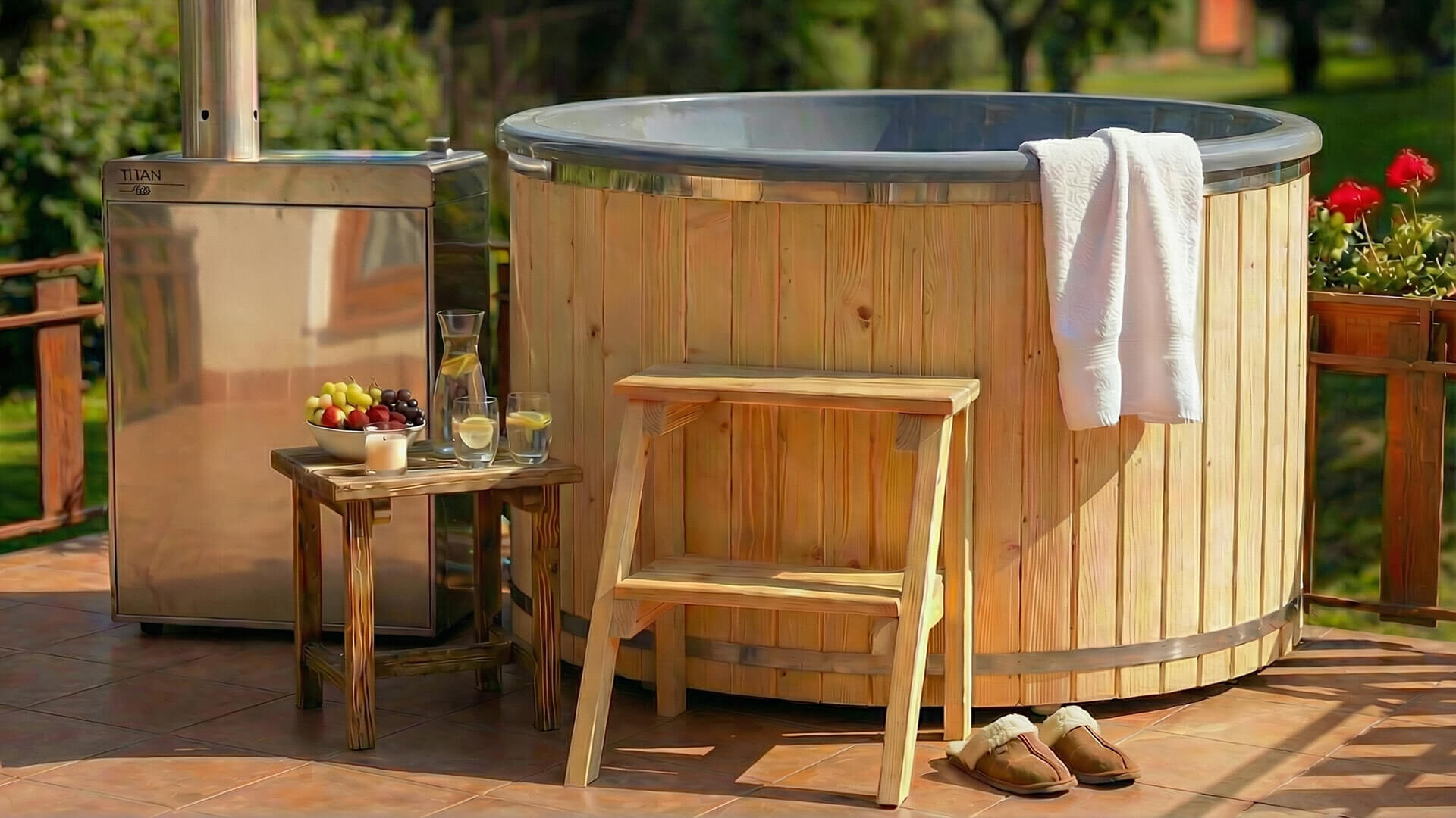 Jen vy a dokonale vyhřátá lázeň, připravená k celoročnímu otužování nebo zimnímu prohřátí. Zapomeňte na hlučné vířivky závislé na zásuvkách a drahém provozu. Koupací sud TITAN přináší nezávislý ostrovní systém, který vám umožní umístit wellness kamkoliv na zahradu či terasu bez nutnosti přívodu elektřiny.